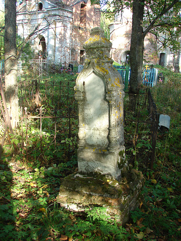 Шипырев Петр Федорович («Подъ симъ камнемъ покоится прахъ полковника Петра Федоровича Шипырева... ончилъ жизнь 1830 года генваря 22 дня 73 летъ господи прими мой духъ с миромъ помяни мя господи и прийдеши во царствие твоемъ»).